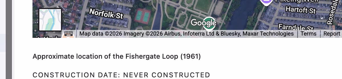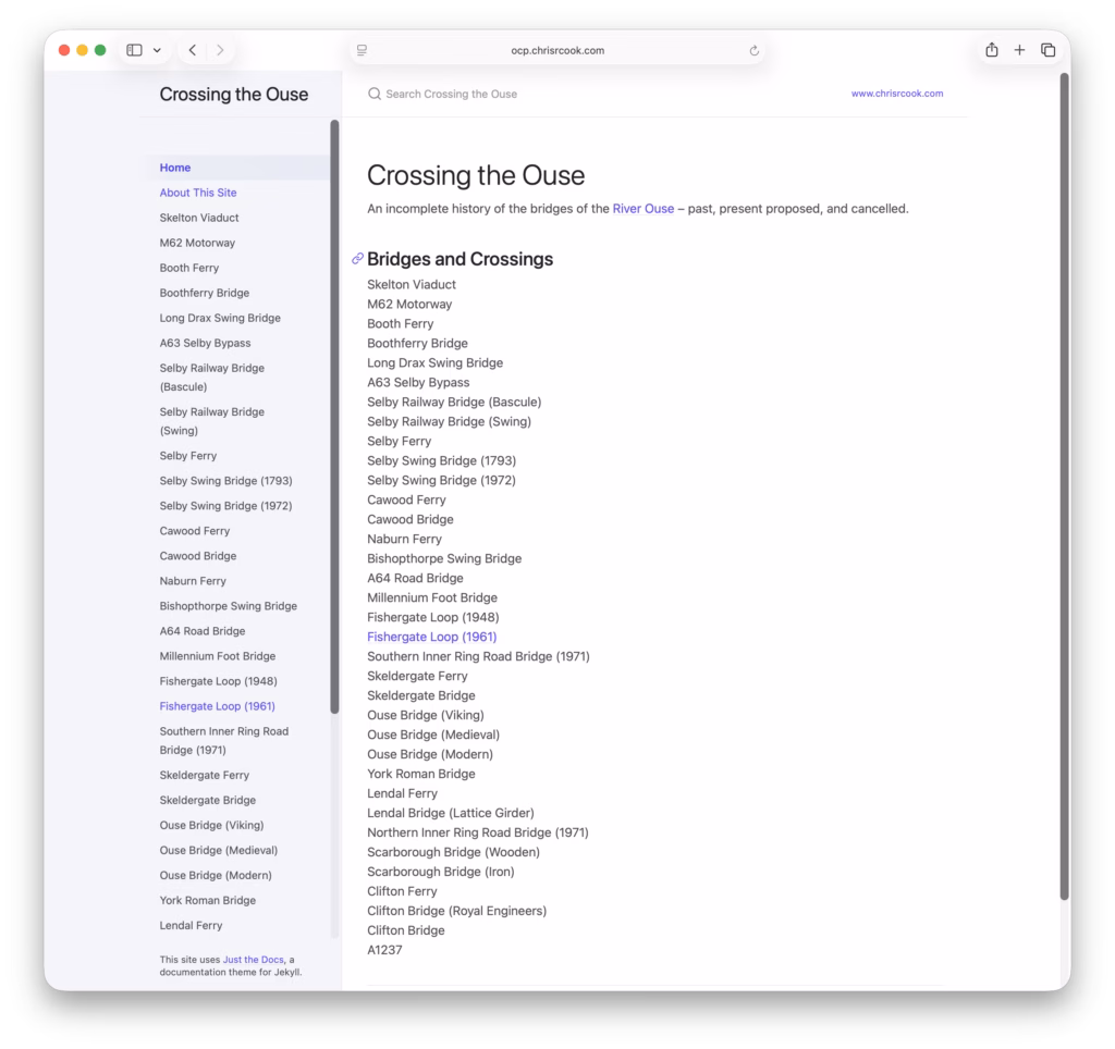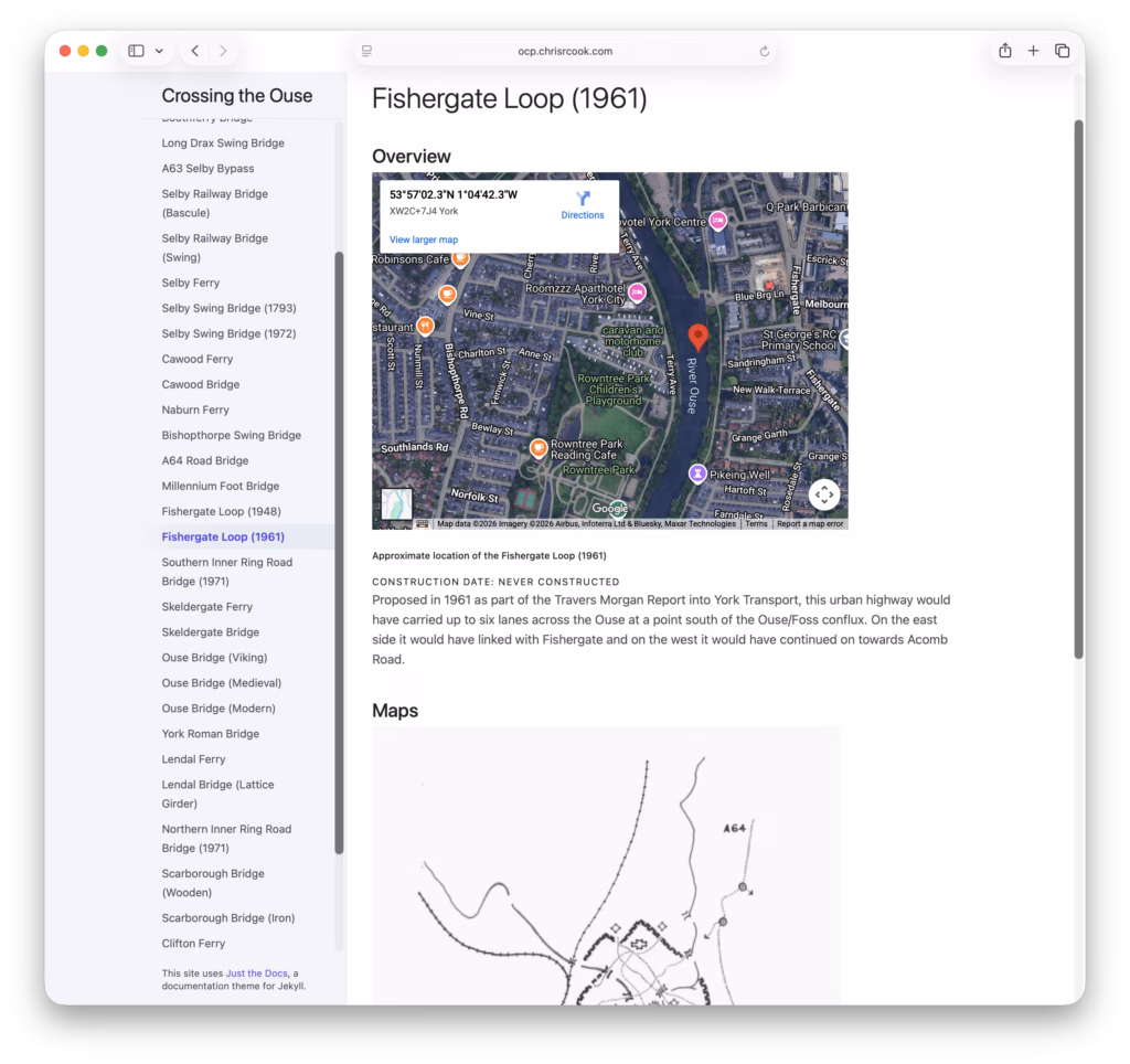 New toy time! Crossing the Ouse aims to be a comprehensive history of crossings of the River Ouse. I’ve only posed one entry so far – Fishergate Loop (1961) – but I have the various bits and pieces needed for several more.