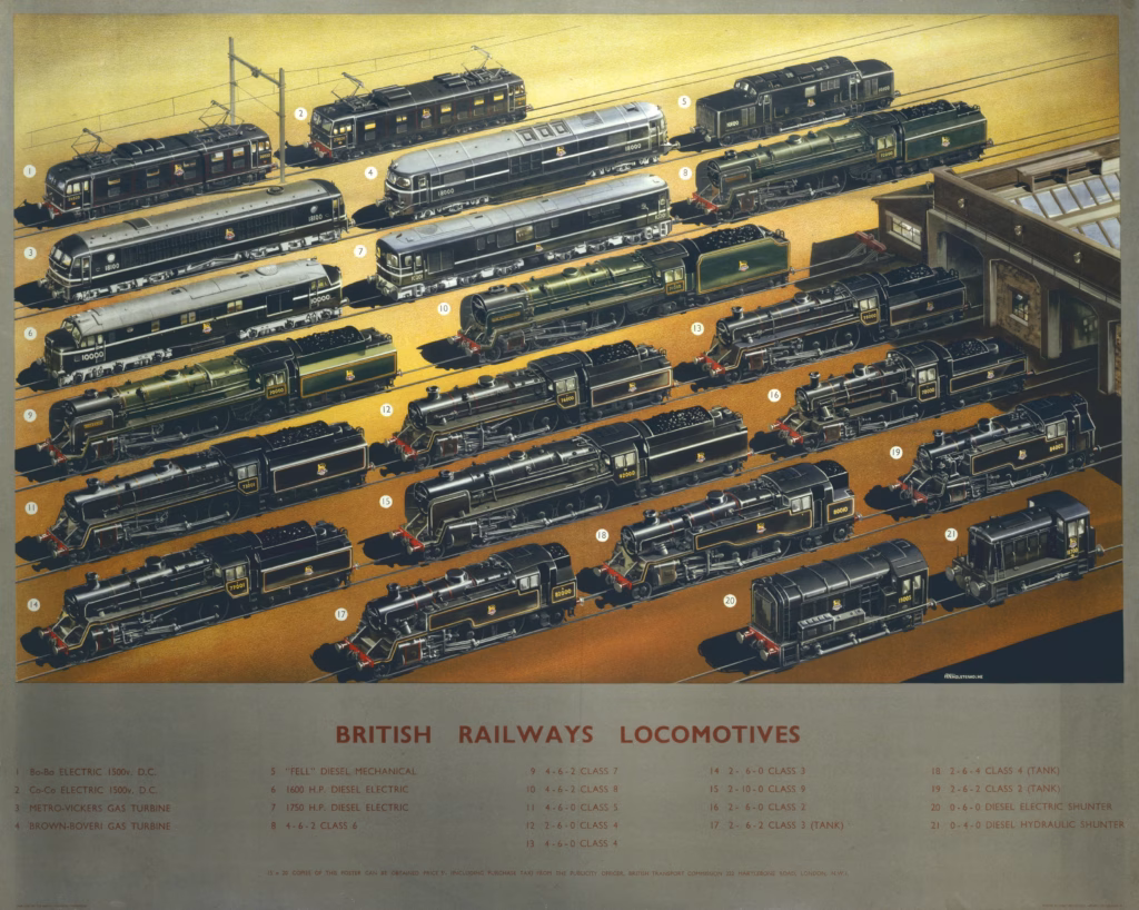‘British Railways Locomotives’ (circa 1956) British Railways Locomotives. Science Museum Group. CC BY-NC-SA 4.0 Licence. Click to embiggen. A lovely poster from the Science Museum Group; British Railways Locomotives from around 1956. Related Posts